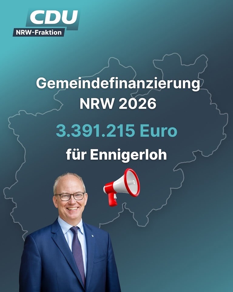 schön, dass Sie auf unserer Internetseite vorbeischauen und sich für die Politik der CDU in unserer schönen Stadt Ennigerloh interessieren.