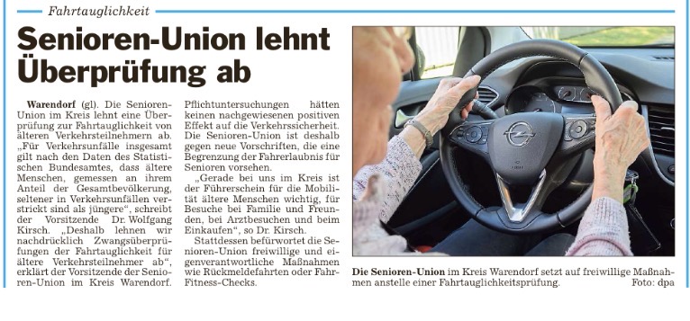 Keine Zwangsüberprüfung der Fahrtauglichkeit von Senioren!