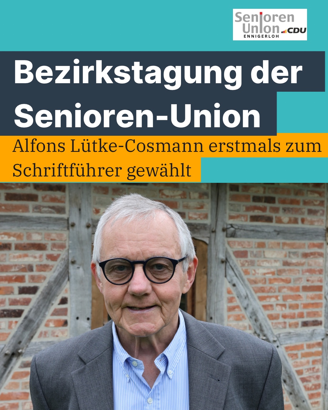 Auf der Bezirkstagung der Senioren-Union, die am 22.05 in Dülmen stattfand, ist der Ennigerloher Alfons Lütke-Cosmann erstmalig zum Schriftführer gewählt worden.