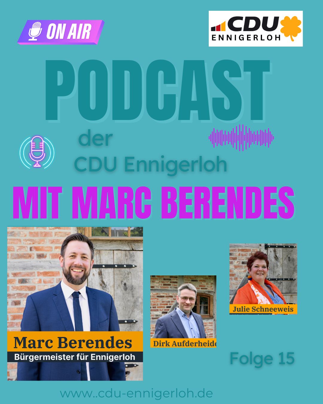 Mit diesem Internetauftritt möchte die CDU Ennigerloh aktuelle Themen, Projekte und Diskussionen für alle Bürger transparent machen. Als neuen Service, produzieren wir jetzt regelmäßig einen Podcast....hören Sie gerne mal rein!